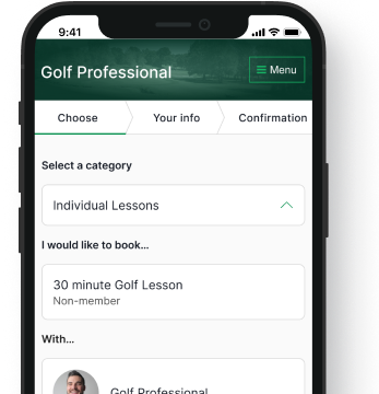 Give customers the freedom to book lessons, fittings or events 24/7 from any device — no calls, no hassle, just a simple and professional experience.